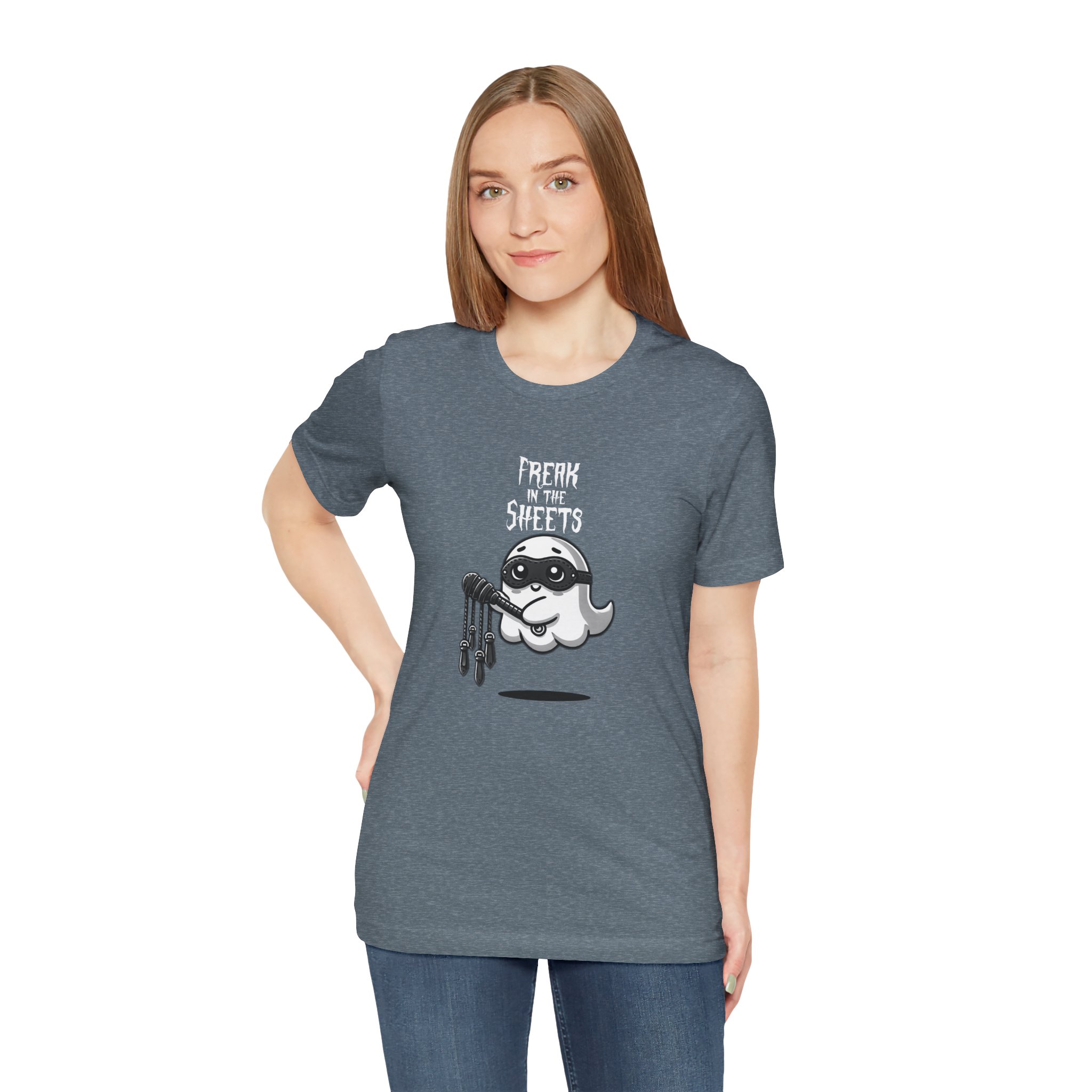 Light, soft, and a little bit mischievous — this tee brings a playful, spooky vibe without taking itself too seriously. A cheeky masked ghost clutching a microphone and keys floats above the slogan “Freak in the Sheets,” printed with crisp detail on the chest. Wear it on late-night runs, to open-mic nights, or while lounging at home; the breathable Airlume combed cotton keeps you comfortable whether you’re layering or going solo. Thoughtful construction — side seams, ribbed collar, shoulder tape and a tear-away label — keeps the shirt looking sharp and feeling easy against the skin. Ethically made and REACH certified, it’s built to last and made with care.